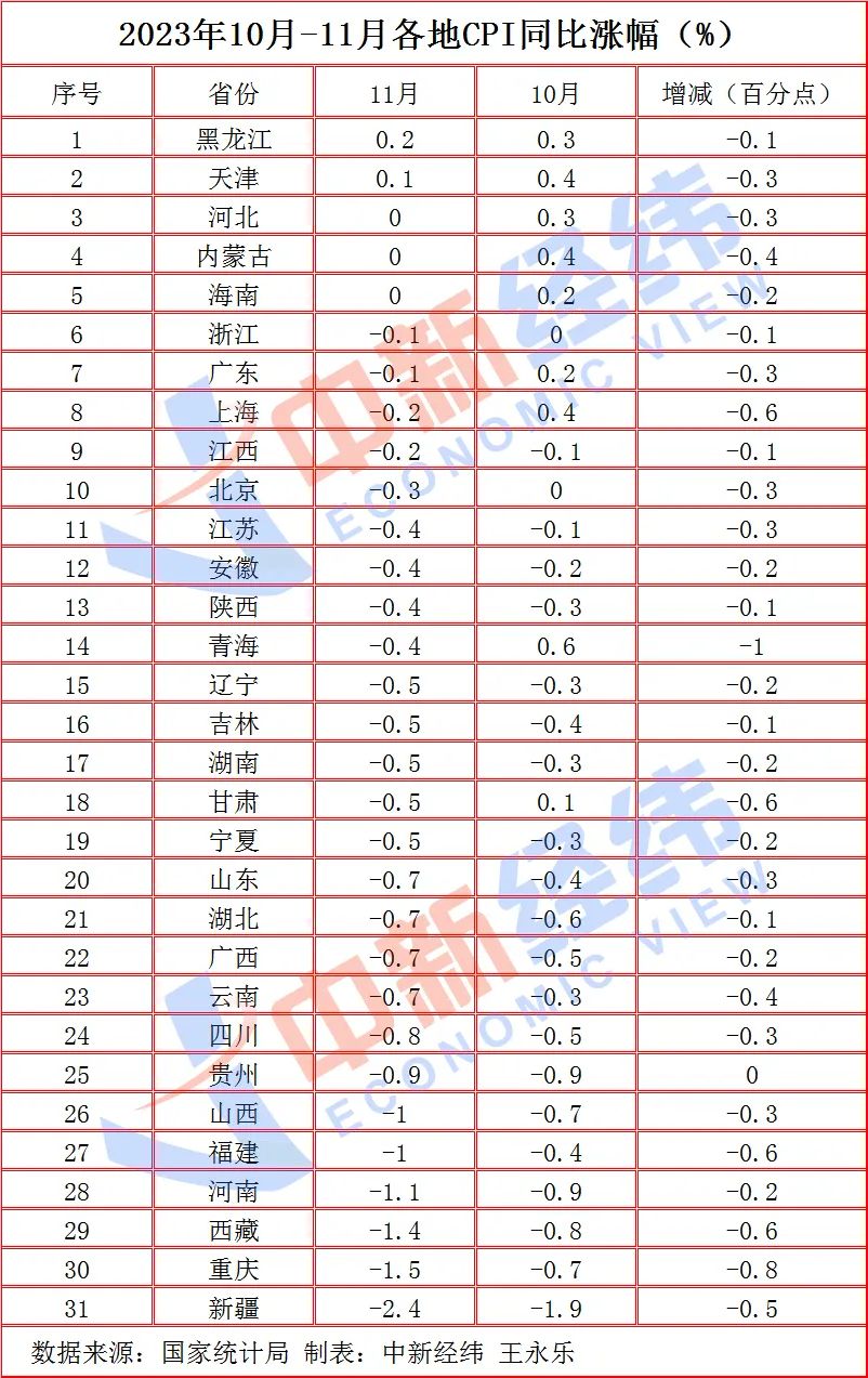 日前,国家统计局公布了31省份2023年11月居民消费价格指数(CPI)。中新经纬梳理发现,11月,26省份CPI同比下降。其中,贵州、河南、山西等3省份物价连续八个月回落。