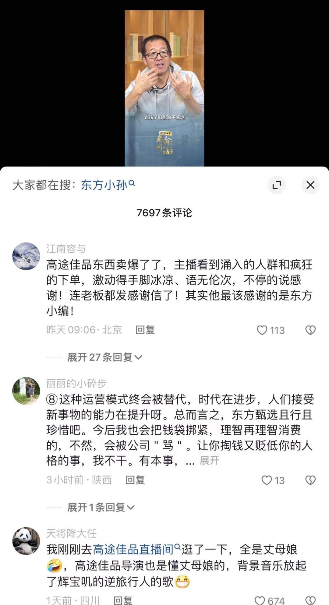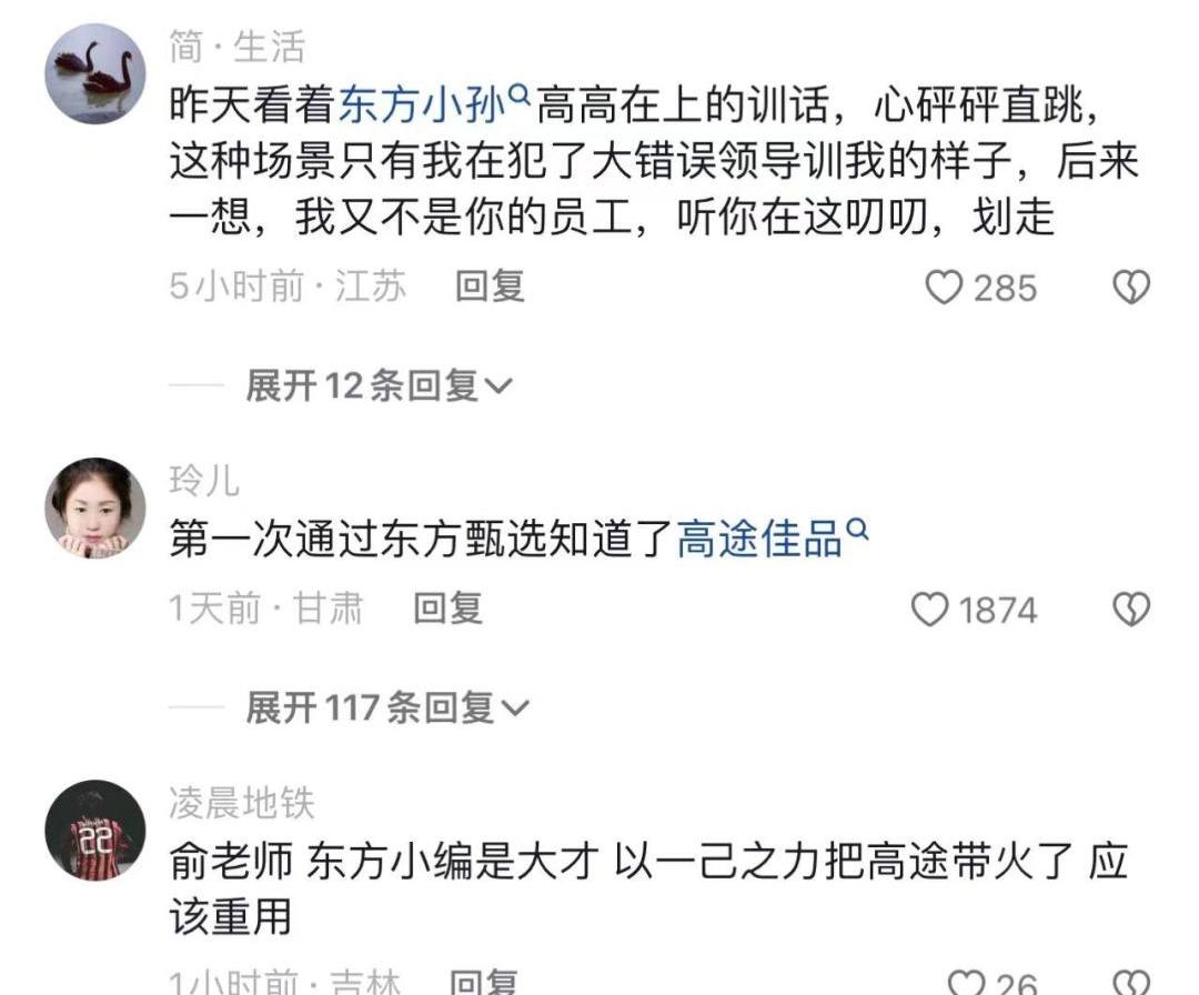 “自称很了解业务的小编在评论区胡回复,导致很多朋友不舒服,我跟俞老师直接告状了。俞敏洪让我和东方小孙直接沟通,不要太客气,今晚我们非常激烈沟通了,大概喝了好几壶酒。”