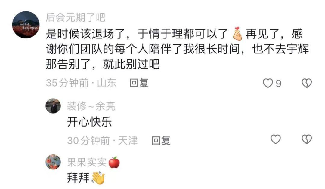 在东方甄选抖音账号发布的“停播”的短视频下面,一位“粉丝”留下这句留言。
