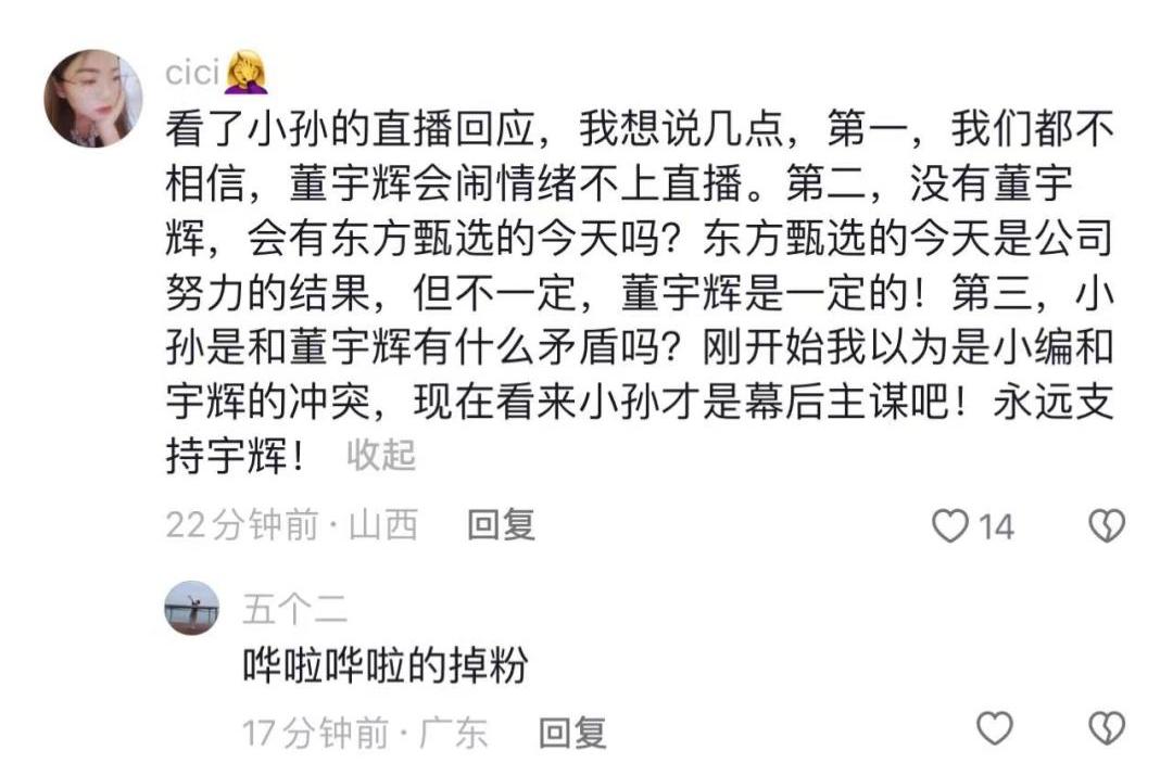 我们看看孙东旭的17分钟回应,我力排众议培养了董宇辉,我给董宇辉不止几千万的收入,整个团队都付出了那么多……