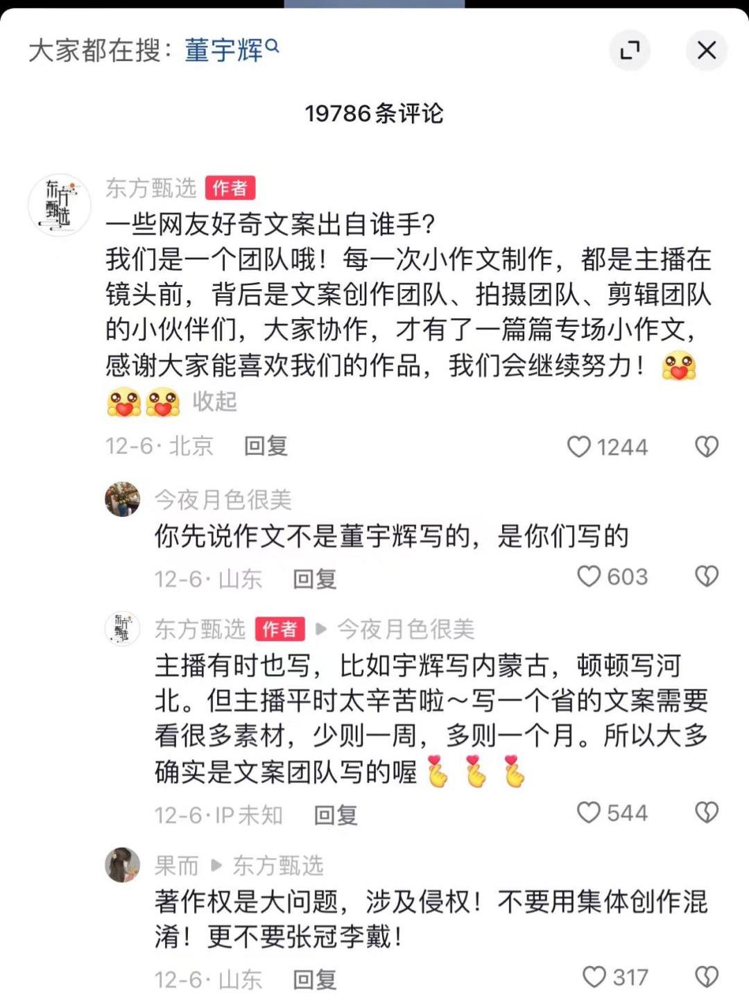 2、董宇辉从未说过每一篇“小作文”都是由他本人亲自撰写的,“小作文”发展到今天,已经是东方甄选的一个金字招牌。(到底谁说的,不重要了,重要的是有人把这块招牌给砸了)