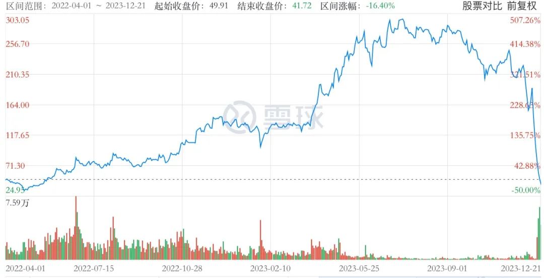 而在此之前,因业绩表现不佳“披星戴帽”的*ST左江,却自2022年4月起,股价从30元左右的低点一路青云直上,一度上涨至299.8元/股的高点,涨幅将近900%。