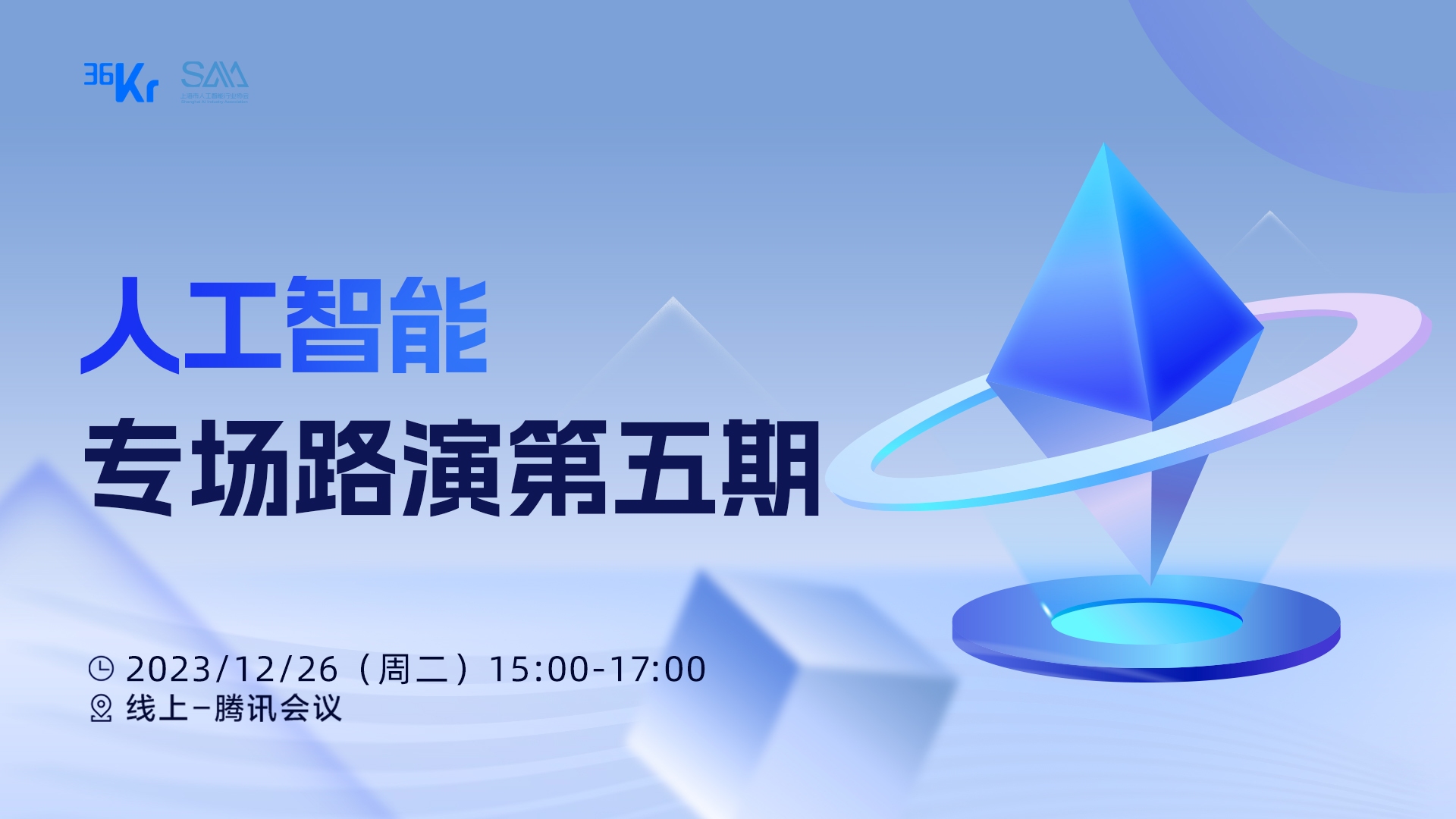 36氪联合上海市人工智能行业协会共同举办每日路演-人工智能专场第五期,欢迎AI领域的创业者和投资人报名!