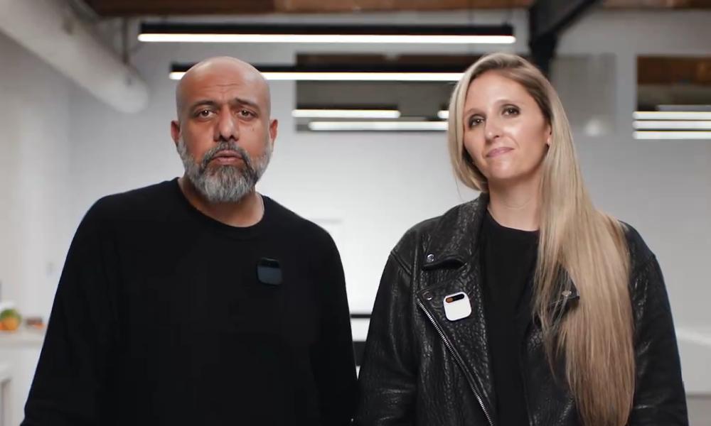 ▲乔德里(左)和邦吉奥诺(右)发布Ai Pin(图源:Humane)