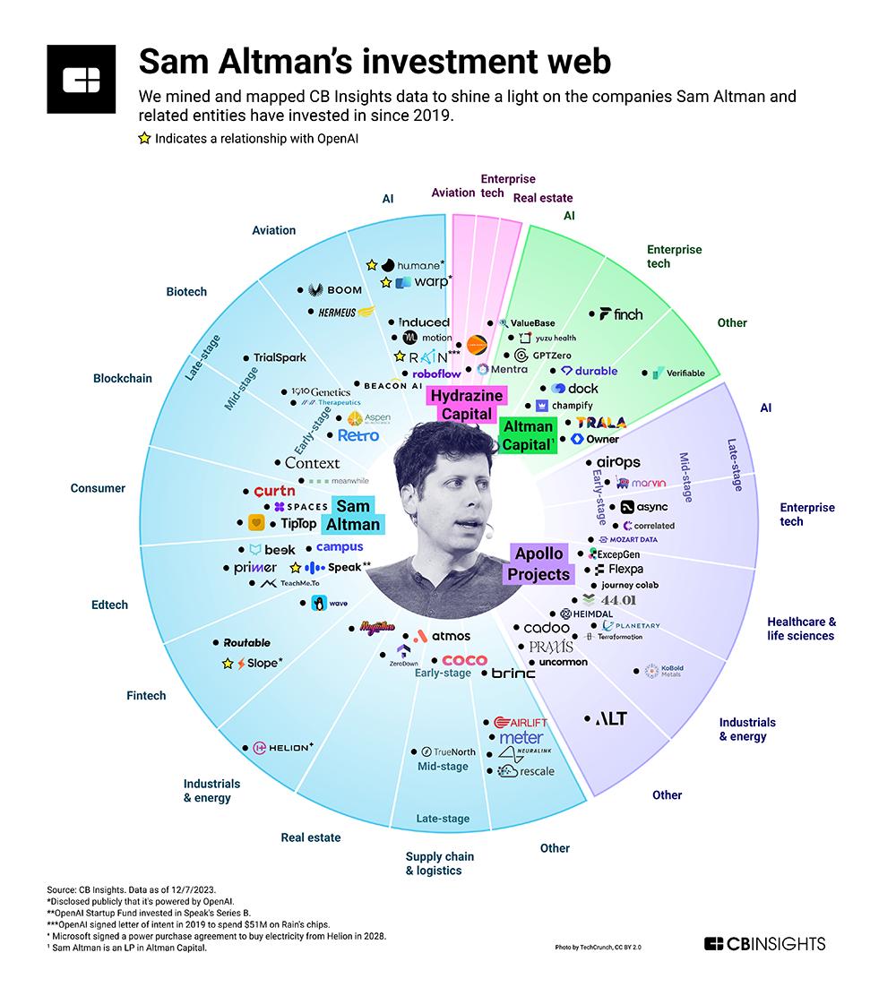 ▲阿尔特曼投资版图(图源:CB Insight,数据截至2023年12月7日)