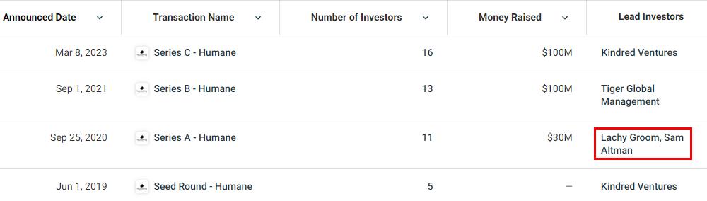 ▲Humane获得的C轮融资部分参投者(图源:CrunchBase)