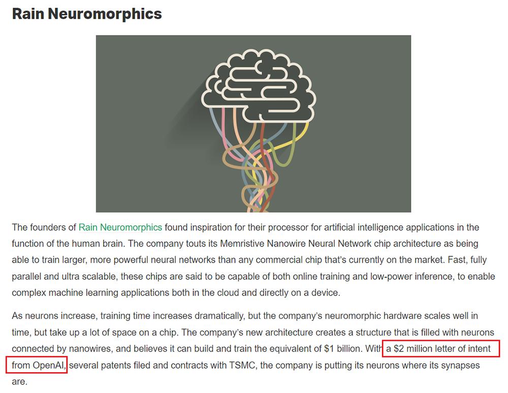 ▲Rain AI在2018年已获得OpenAI意向书(图源:TechCrunch)