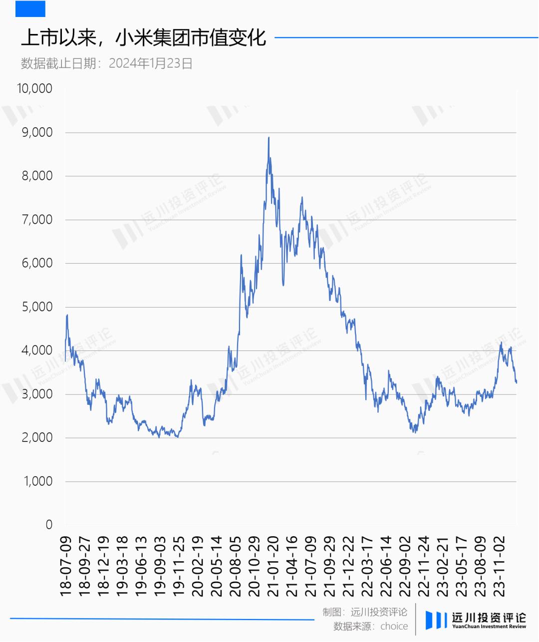在如今投资者们试图用股息率来作为安全边际的市场环境里,成长投资,尤其是一家中国本土企业的持续成长,似乎并不是一种讨巧的叙事。更何况,小米一边要面临智能手机行业性的见顶困境,一边要反击在电动汽车领域没有先发优势的质疑。