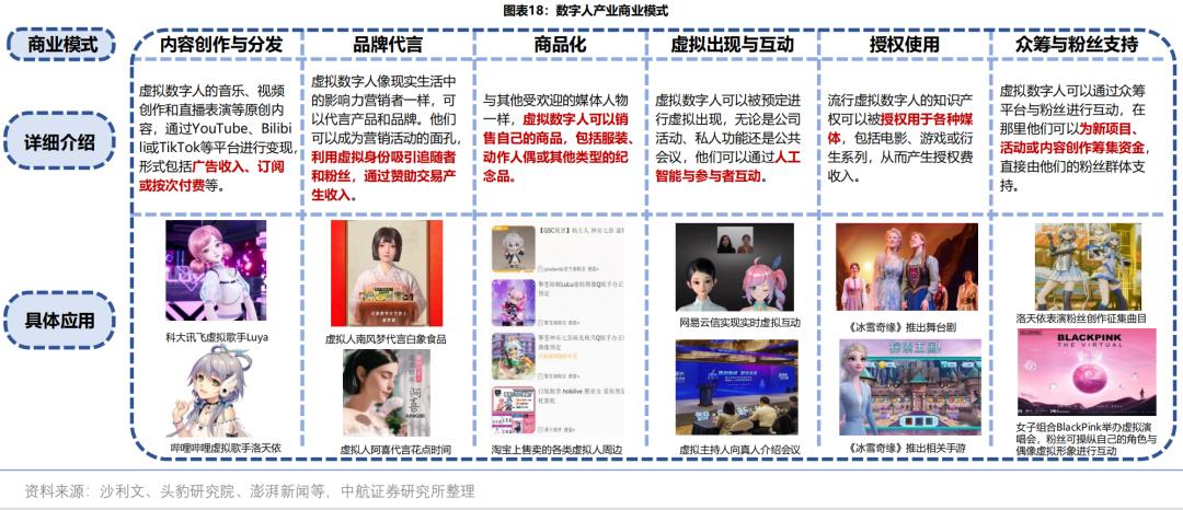 根据沙利文、头豹研究院等数据显示,2023年多个品牌都在探索如何用虚拟人产生更大的价值,其中诸如虚拟歌手、明星克隆、消费品牌的虚拟代言人,迅速风靡网络。