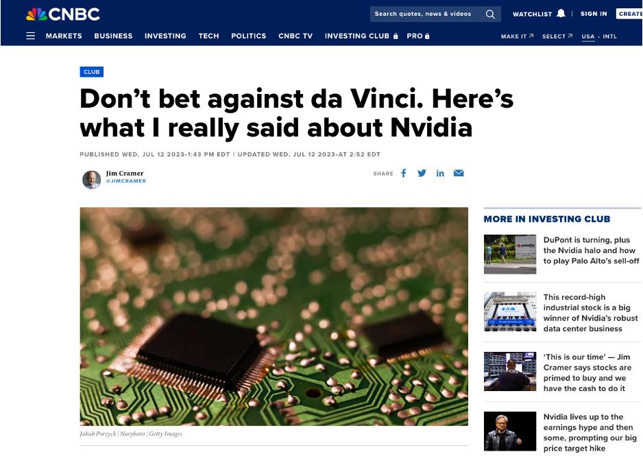 至少有一点可以肯定,克拉默如此高度赞赏黄仁勋,绝对是发自内心的。多年以来,他的基金一直在做多英伟达,当然因此受益颇丰,克拉默甚至开心地把自己家的狗也命名为英伟达。