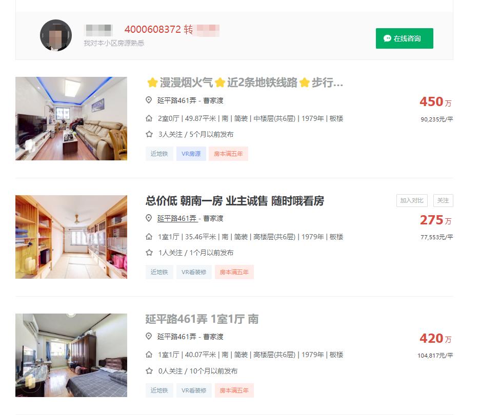 比如关注延平路461弄某小区中介就说年前他还看到四五 套外网在挂, 现在就剩3套了 。