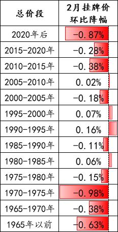 挂牌量下滑都比较多,但是挂牌价格下滑主要集中在2020年后的次新房、以及1970年以前的老房子