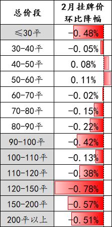 挂牌价的降幅主要集中在≤30平的房源,另外就是 90-200平以上 。