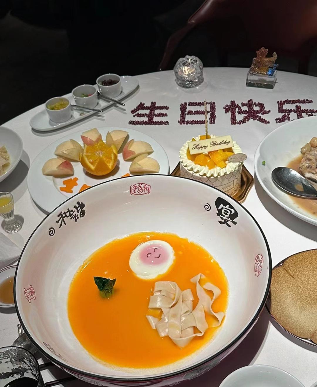 好比新荣记的穷鬼套餐配套服务就堪比海底捞,如果带着小孩,服务员会递上一把辅食剪,专用于把食物剪成小块;听说你过生日,来碗长寿面自不必说,服务员还会帮忙拍照并赠送实木相框;如果穿得少了,你一句“冷”,服务员就递上了LV披肩......