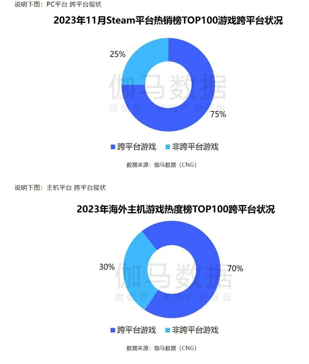伽马数据在2024年趋势报告中统计了各平台头部产品的跨平台状况,TOP 100 Steam跨平台比例为75%,海外主机为70%。移动端则有25.9%的用户以手游模拟器的形式,满足跨平台需求。