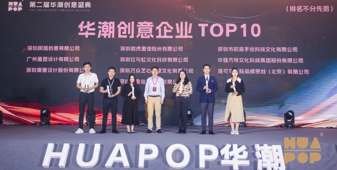 本届“华潮创意盛典”,组委会以独立评选方式评选出了以NIO蔚来、卫龙、国瓷永丰源等品牌为代表的年度创意品牌标杆企业——华潮创意品牌TOP10 ;以苛研 射频精华、Robkoo R1真采样电吹管、花西子 同心锁口红、尚虞青 青瓷等产品为代表的年度创意出圈产品——华潮创意产品TOP15;以洛可可国际品牌策划(北京)有限公司、深圳奥雅设计股份有限公司、广州重塑设计有限公司等企业为代表的年度创意领军企业——华潮创意企业TOP10;以冯铮、杨春林(阿新)、许夏林、贾伟等创意工作者为代表的年度创意领域领军人物——华潮创意人物 TOP10;以广西微念实业有限公司、杭州气味王国科技有限公司、阅霆信息技术(上海)有限公司等企业为代表的度创意领域创业新星——华潮未来之星 TOP15;以陈丽君、王平、鹿溟山等创意工作者为代表的年度新兴出圈设计师——华潮创意之星 TOP10。