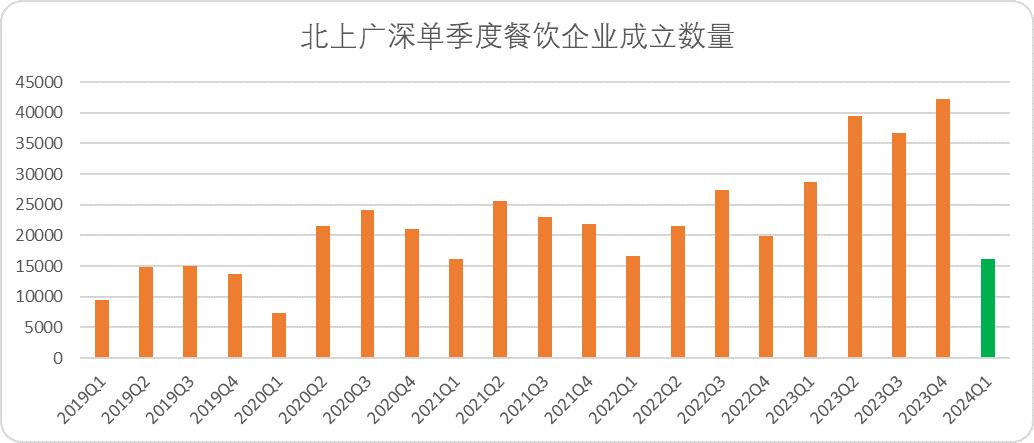 图:北上广深单季度餐饮企业注册成立数量,来源:天眼查,锦缎整理