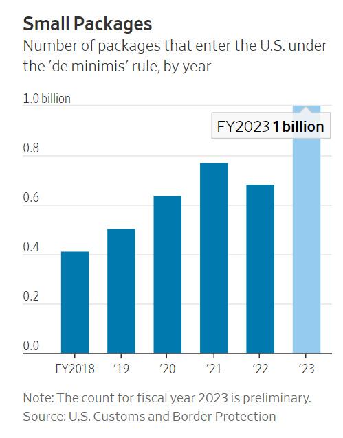 从2022年开始,美国议员们密集关注通过“小额豁免”进入美国的中国跨境产品。