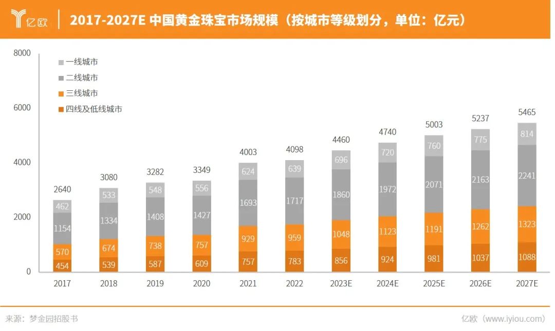 他们将目光放在了消费能力不断上升的低线城市。周大福早在2018年就开始推广“新城镇计划”,2019年提出主攻较次级城市和县级城镇;拥有5000多家店的周大生珠宝,三线及以下城市门店比例达70%;六福集团也在2023年初表示,门店数量达到3000家后将向四五线城市扩张……