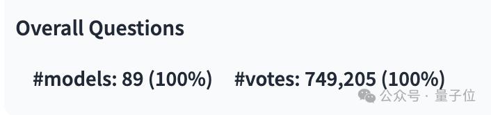 截至最新榜单发布,LMSYS共收集了近75万次大模型solo对战结果,涉及的模型达到了89款。