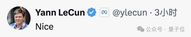 对于这一结果,Meta的首席科学家LeCun十分高兴,转发了推文并留下了一个“Nice”。