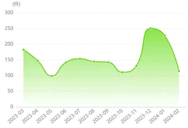 2023年3月至2024年2月新能源汽车企业融资事件变化