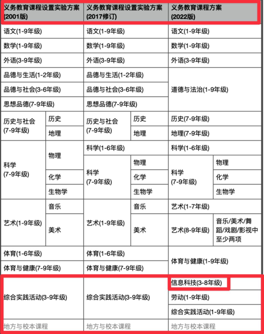 教育部公布义务教育新课标,信息科技成义务教育新科目