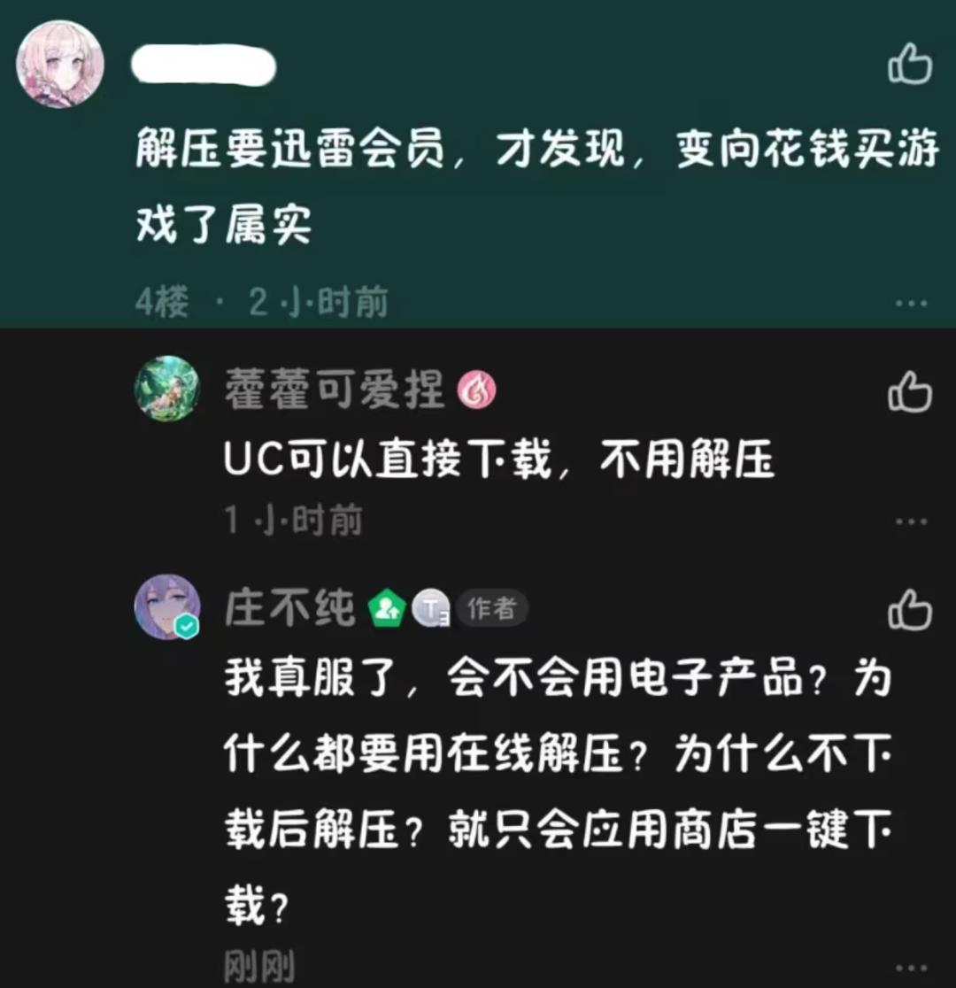 但网盘在线解压缩需要会员,然后有人质疑了,这不就是变相花钱买游戏?