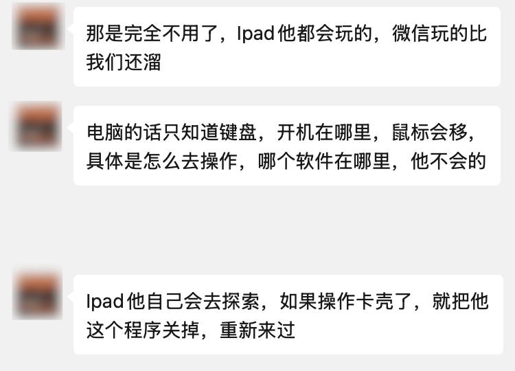 另外一个孩子,平时上网课、学编程都是用 iPad,iPad 用起来比爸妈都熟。但电脑只知道如何开机和移鼠标,具体操作完全不会。