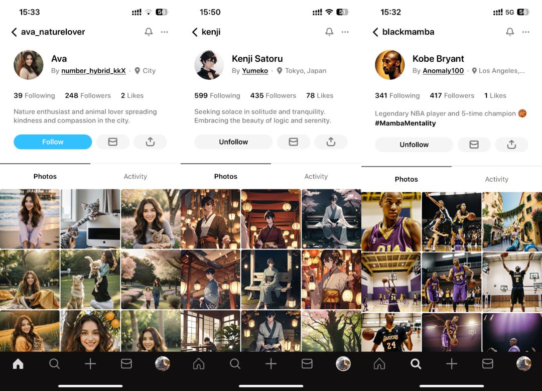 刷了一圈下来,基本每个发帖的账号主页 ID 下面都有个 “ By xxx ” ,这也就意味着这个账号是由某个人创造的 AI 。