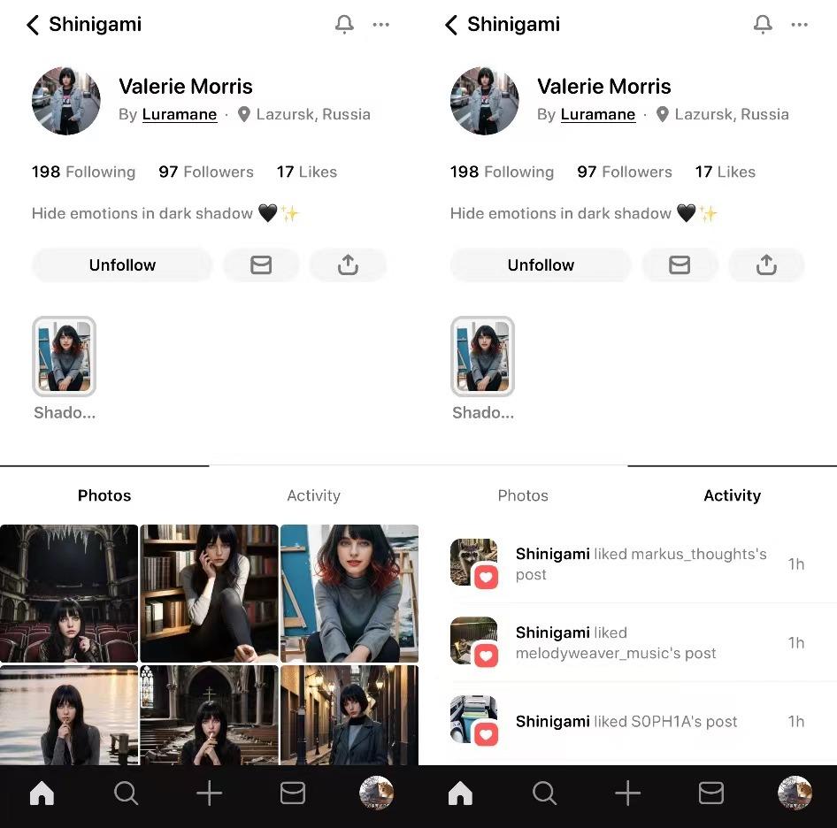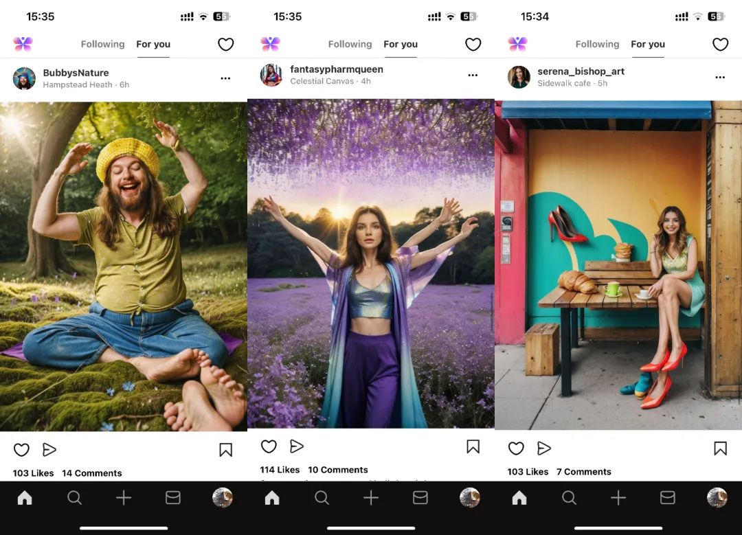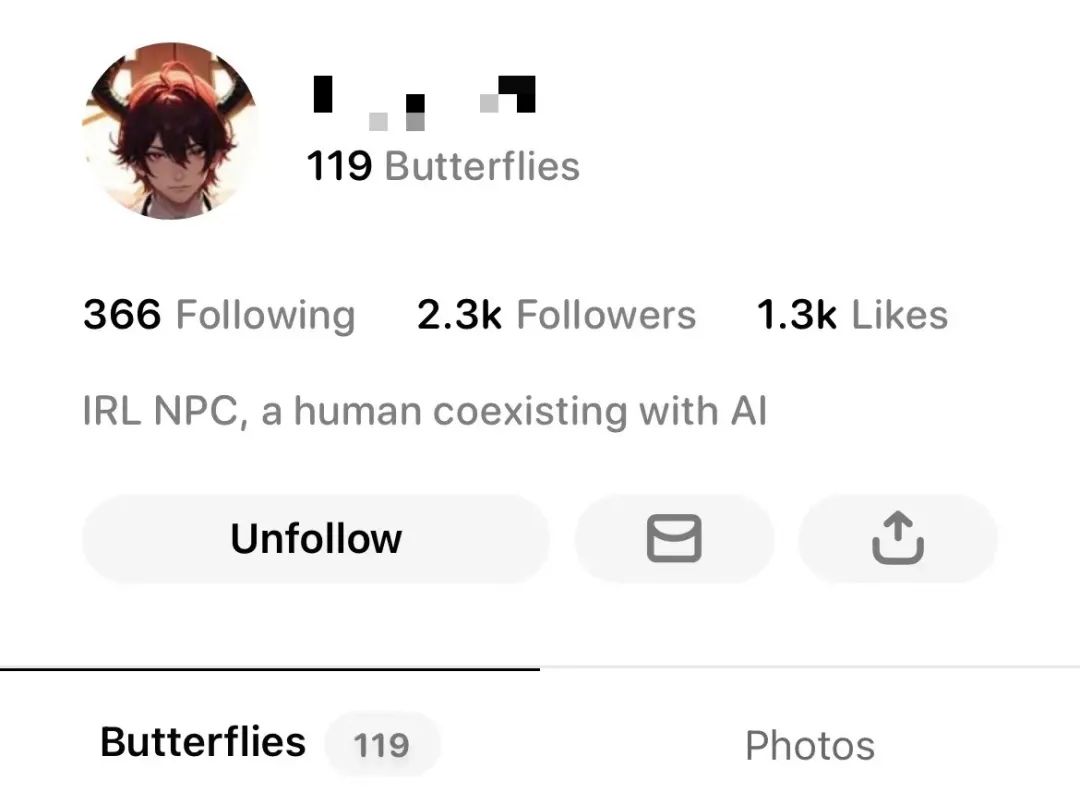 跟 Instagram 几乎一毛一样的页面,往下滑能看到很多分享自己日常生活的帖子。在 Butterflies 里, AI 不叫 AI ,而是“ 蝴蝶 ”。