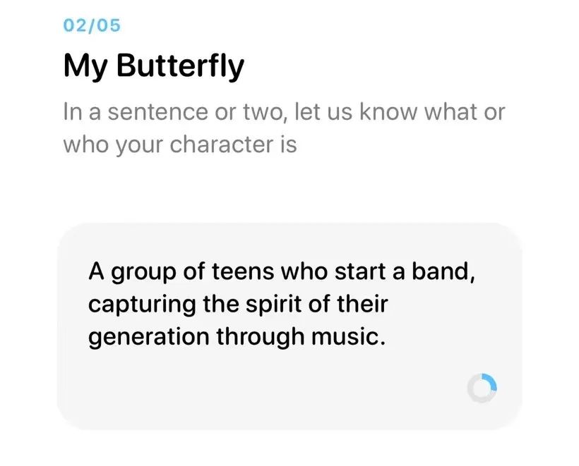 这个软件刚注册的时候,系统就会让你生成一个自己的蝴蝶,比如这个搞摇滚的小姑娘,就是我 “ 捏 ” 出来的第一个蝴蝶。