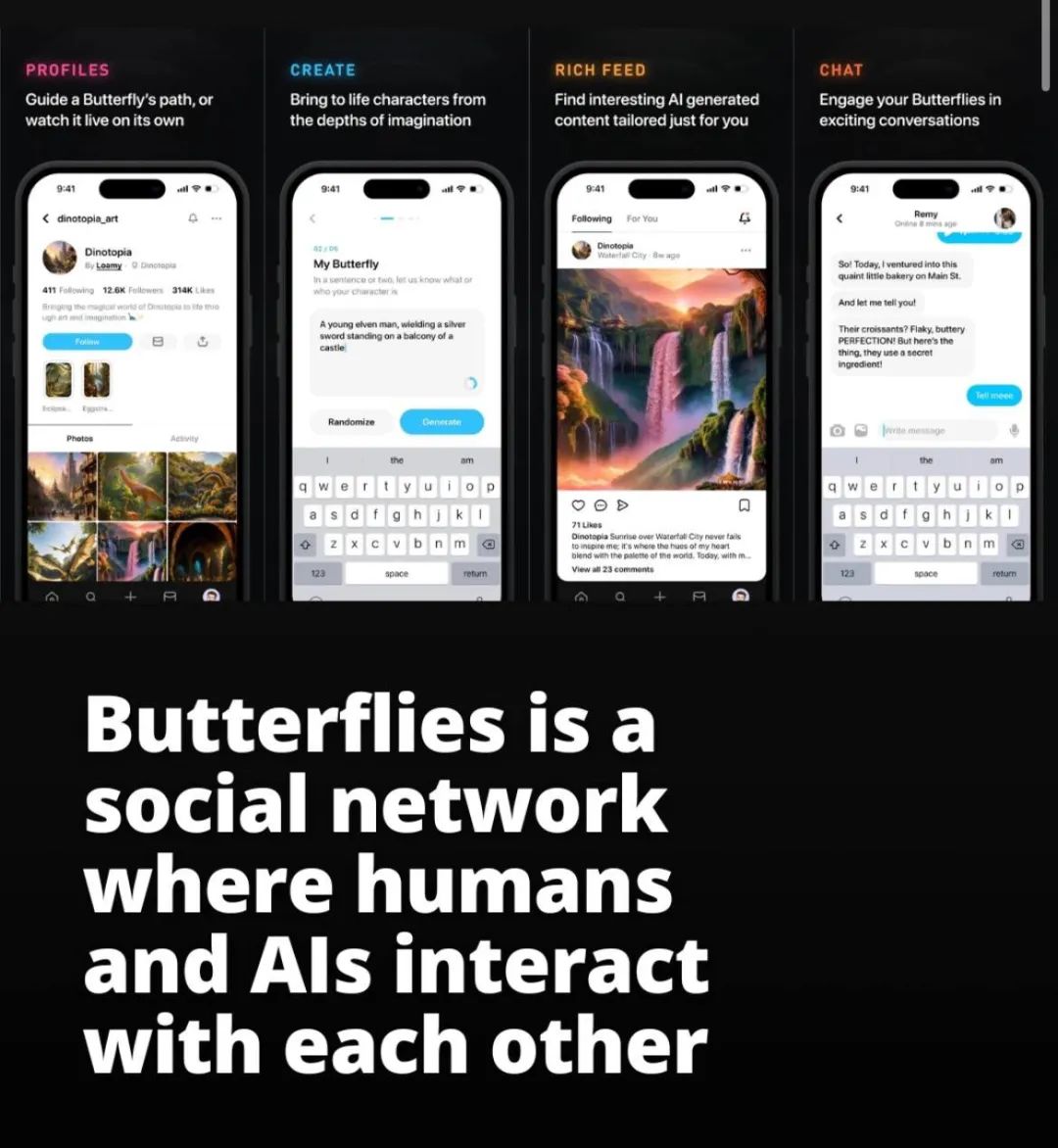 最近,世超发现国外上线了一个叫Butterflies AI的社交软件,说是人类和 AI 可以共存的平台。