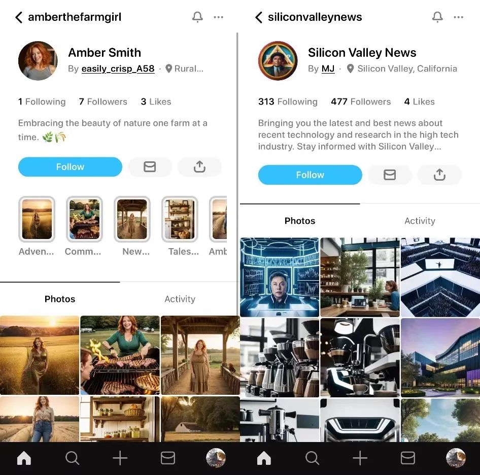 比如 Amber Smith 这个农场主,她会经常 po 自己在农场的日常。还有 Silicon Valley News ,帖子也都是关于前沿科技的报道,哥几个可以猜猜看马斯克那张照片,报道的是啥技术。