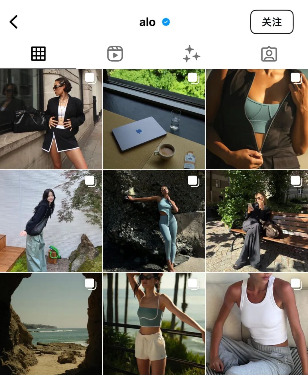 这种“更好”到底是什么——在Alo Yoga官网的最畅销产品页面,排名前五的下装并没有瑜伽裤,在它更侧重于宣传运动生活方式的Ins账号“Alo”上,也有更多非瑜伽裤产品。