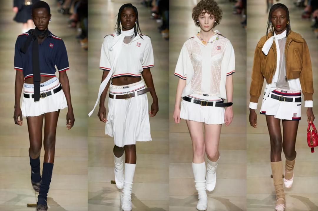 率先把网球的“老钱感”吹成风的还得是时尚品牌。2022年,Miu Miu将自己的秋季系列和网球元素结合,把兼顾活力、年轻、复古、休闲的百褶网球裙搬上了T台。同年7月Miu Miu还举办了网球俱乐部活动,赴约的名人KOL们也都以网球穿搭出场。