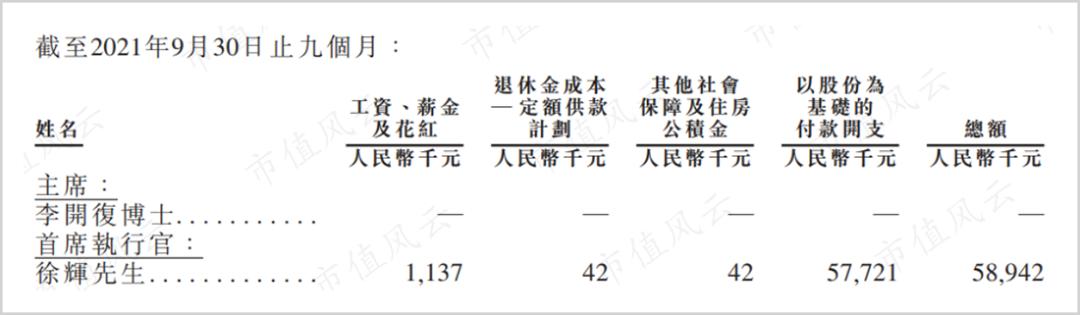而且研发人员的股权激励大幅少于行政人员。2021年前三季度的2.1亿股权激励中,徐辉一人分走5772万,超过所有研发人员加起来的4724万。