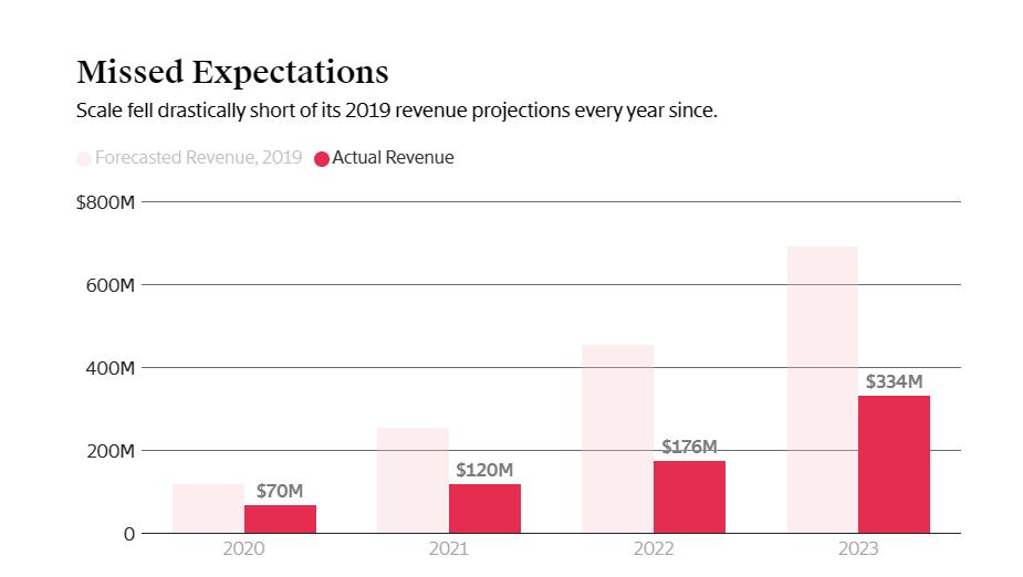 图注:自2019年以来,Scale AI从未实现每年设定的收入预期目标