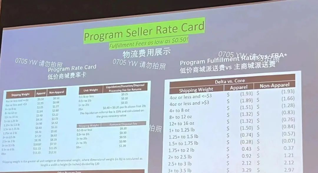 据悉,亚马逊将创建一个单独的“低价商城”购物专区,预计将于今年秋季、“黑五”大促启动前正式上线。在本次会上,亚马逊公布了“低价商城”可入驻类目的价格上限及物流配送费率,同时每个商家都被分发到一张表格,填写了如若入驻可以考虑上架的链接数。