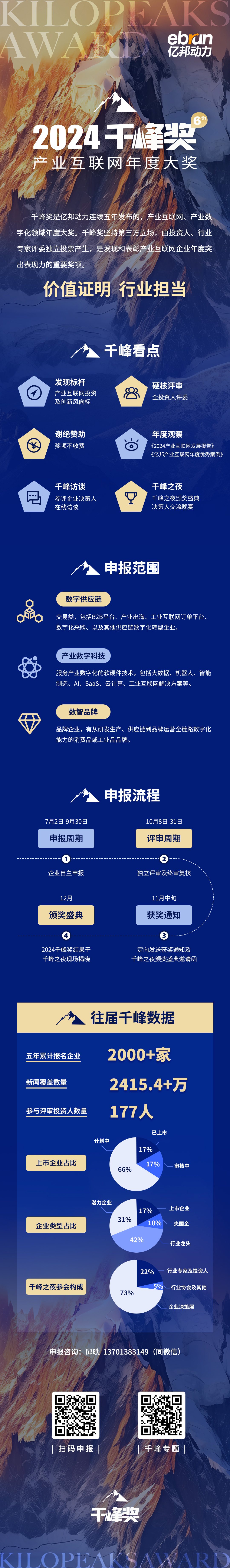 过往申报数据显示,上市或准上市公司占到参评企业的34%,覆盖互联网巨头、国央企和细分赛道头部玩家。从设立以来,千峰奖已经帮助众多产业互联网企业实现了价值深挖和品牌“破圈”,从“默默无闻”成为被各界认可和高度信任的知名企业,不少企业还获得了资本市场的青睐。