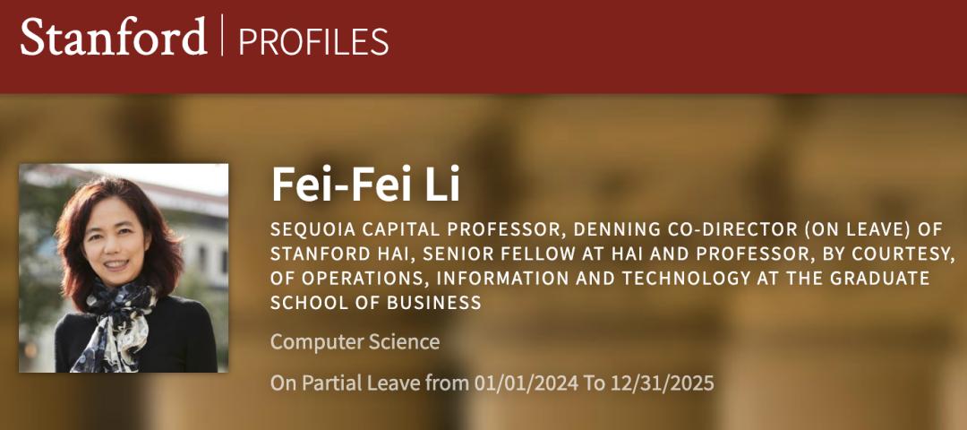 李飞飞在斯坦福大学的休假期间创立了World Labs,她在斯坦福大学人类中心人工智能研究院(Human-Centered AI Institute)担任联合主任。