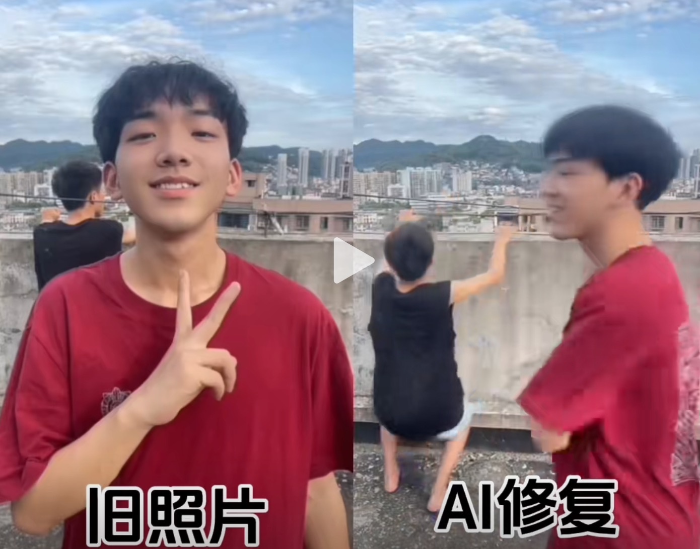 最开始一位博主分享自己制作的AI视频,让老照片重新“活”了过来。