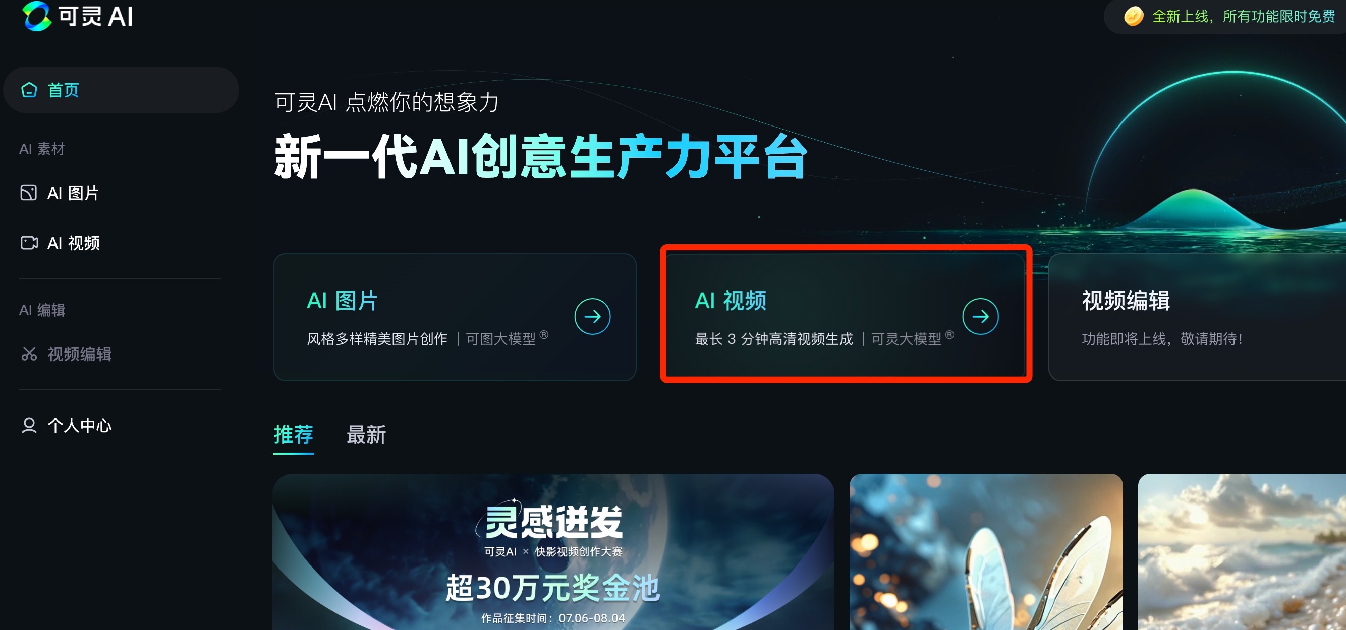 打开可灵官网(https://klingai.kuaishou.com/),或者快影App;