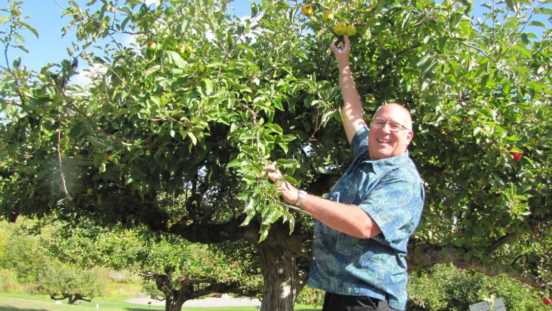 戴夫与一棵树龄超过 100 年的苹果树(图片来源:outsideonline.com)