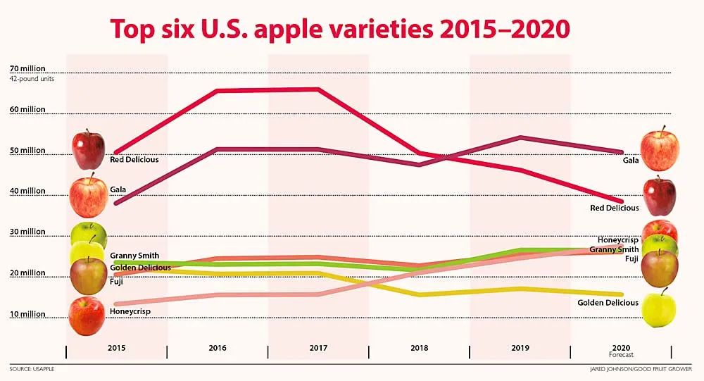 2015-2020年美国六大苹果品种(图片来源:goodfruit.com)