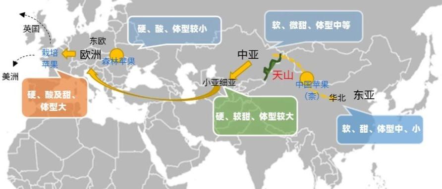 苹果早期的传播路线(图片来 源:DOI: 10.1038/s41467-017-00336-7)