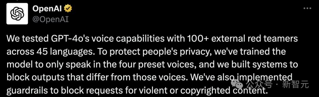 他们与100+红队人员,就45种语言对GPT-4o语音能力进行了测试。