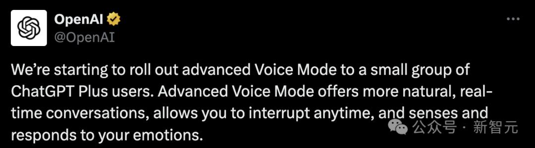OpenAI称,高级语音模式提供了更加自然、实时对话,可以随意打断,甚至它还可以感知、回应你的情绪。