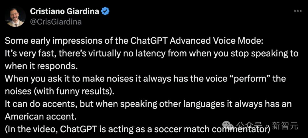 有人经过一番测试下来,发现ChatGPT高级语音模式非常快,回答几乎没有延迟。