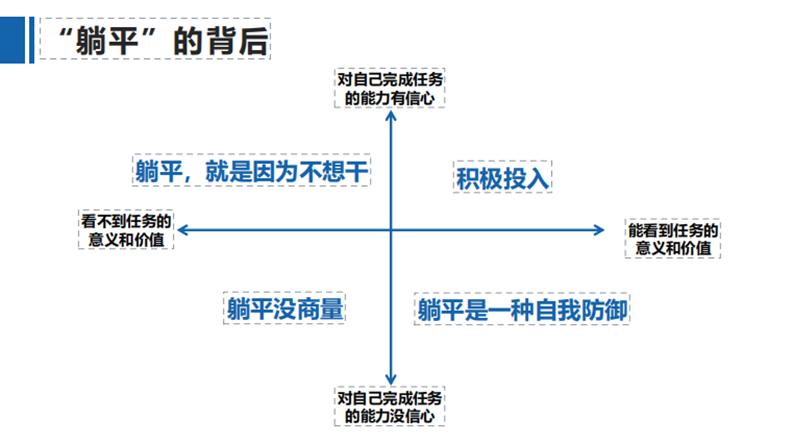 所以,对于管理者来说,不要着急贴标签,要看到躺平背后具体原因是什么,这样,就可以找到一些有针对性的解决方法。